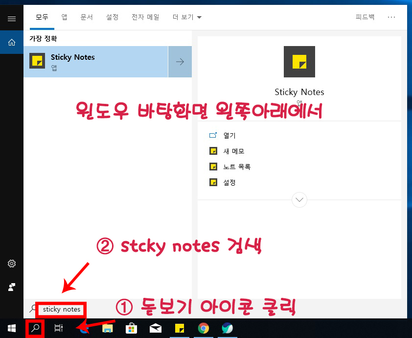 "sticky notes" 를 입력해주시고 실행해주세요